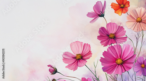 Elegant wedding invitation card background . Minimal hand painted watercolor Cosmos flowers texture template background. Design for wedding, vip cover, poster, rsvp moderncard.Valentine's Day