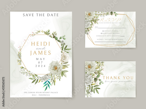 Elegant wedding invitation white flowers design