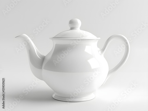 Elegant White Ceramic Teapot with Refined Design on Plain Background