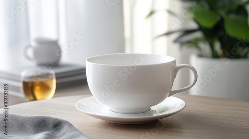 cup, saucer, tea, hot drink, porcelain, minimalist, kitchen, home, decor, plant, table, wooden, beverage, warm, bright, interior, comfort, dining, arrangement, simplicity, relaxation, set, harmony, stylish, empty, freshness, modern, colours, ceramic, aesthetic, design, luxury, nature, cosy, light, space, surface, background, tabletop, soft, texture, art, lifestyle, serving, morning