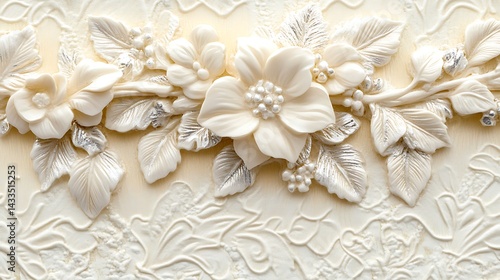 floral, flower, relief, design, texture, background, white, cream, elegant, ornate, decorative, pattern, three-dimensional, wallpaper, embossed, carving, art, craft, wedding, bridal, vintage, romantic, delicate, subtile, home decor, interior design, surface, detail, closeup, macro, floral background, white background, marketing