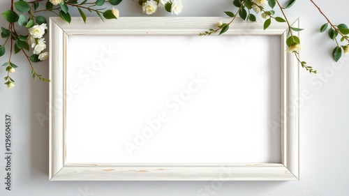 Elegant White Frame Surrounded by Fresh Greenery and Flowers