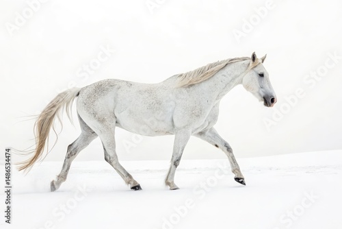 white, horse, studio, walk, trotting, equine, animal, background, plain, graceful, coat, nature, calmness, movement, farm animal, beauty, breed, majestic, shine, paw, rythm, space, mane, tail, soft, mare, indoor, care, health, art, stillness, composition, line, visual, presentation, creature, running, playfulness, generative, ai