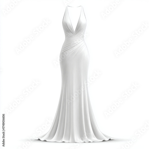 dress, wedding, bridal, gown, white, elegant, fashion, style, beauty, bride, marriage, celebration, event, special, occasion, love, romance, luxurious, sophisticated, design, fabric, silk, satin, flowing, drape, model, studio, isolated, glamour, graceful, form, woman, female, sewing, vogue, minimalist, clean, modern, classic, ceremony, formal, prom, wedding anniversary, february 14