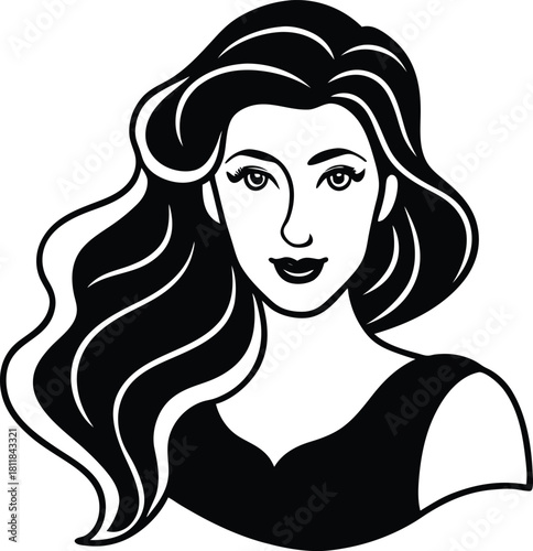 woman, portrait, hair, black-and-white, illustration, drawing, vignetting, female, beauty, elegant, style, fashion, face, coiffure, artwork, graphic, design, vector, art, isolated, white background, head shot, person, missy, pretty, beautiful, classic, vintage, retro, outline, line art, wavy hair, feminine, minimalist, simple, monochrome