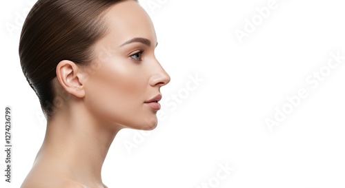 Elegant Woman Profile Portrait - Clean Beauty and Skincare on White Background.
