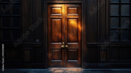 Elegant Wooden Door with Warm Lighting