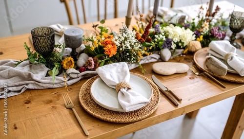 table, setting, floral, natural, elegant, occasion, gathering, presentation, chic, sophisticated, artistic, dining, inviting, tone, earthy, wedding, hospitality, linen, party, event, anniversary, neutral, textured, seasonal, interior, vibrant, warm, cutlery, home, woven, centrepiece, stylish, arrangement, pebble, festive, modern, stone, minimalist, charming, tableware, crafted, napkin, holiday, flower, design, handcraft, cosy, charger, decorative