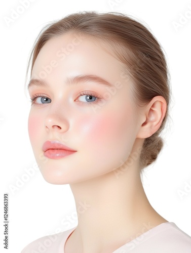Elegant Young Woman with Soft Makeup and Natural Glow