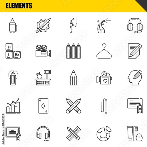 elements vector line icons set. pencil, certificate and pencil Icons. Thin line design. Modern outline graphic elements, simple stroke symbols stock illustration