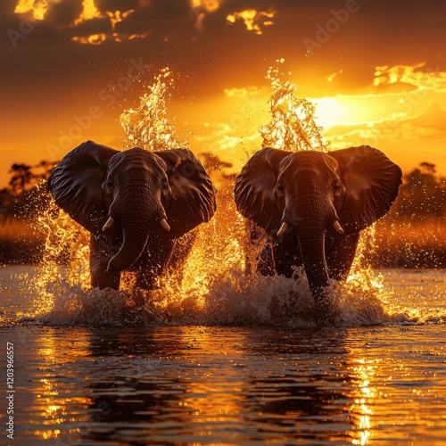elephant, waterhole, distance, vibrant, splash, at, nature, habitat, aquatic, exploration, atmosphere, hours, safari, serene, interaction, moment, harmony, peaceful, magic, tranquil, warm, play, joy, dusk, refreshing, horizon, wildlife, essence, image, fauna, life events, scene, capture, ambience, fun, candid, sun, sunset, leisure, animal, beauty, flora, adventure, environment, summer, landscape, view, playfulness