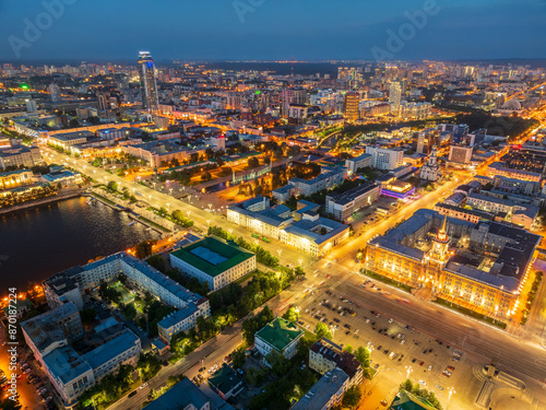 aerial, embankment, night, spring, autumn, summer, center, city, travel, russia, duck pond, historic, river, panorama, landscape, landmark, architecture, building, city landscape, sverdlovsk, water, drone, topview, old, panoramic, downtown, central, office, roof, tour tourism, light, tower, illuminated, dark, lamp, europa, flying, background, view, street, outdoors, colourful, beautiful