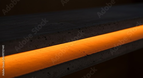 light, orange, glow, illumination, tube, bar, rod, concrete, surface, texture, dark, shadow, background, line, long, narrow, bright, warm, illuminated, smooth, rough, contrast, material, design, element, ambient