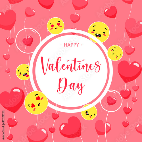 Emotional Valentines day banner. Yellow romantic emoticons with red hearts and joyful grimaces invite you date and confess your love vector.