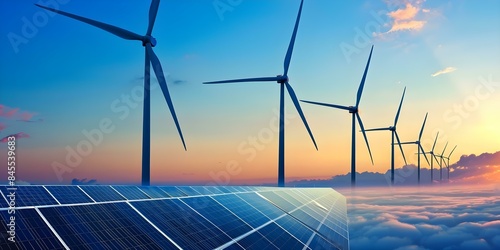 Emphasizing Wind Turbines and Solar Panels as Vital Renewable Energy Sources. Concept Renewable Energy, Wind Turbines, Solar Panels, Sustainability, Environmental Conservation