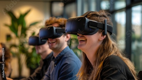 technology, people, innovation, young, virtual, reality, watching, goggles, headset, fun, indoor, man, futuristic, adult, goggles, entertainment, three-dimensional, woman, game, modern, male, business, tech, together, smiling, device, computer, video, occupation, digital, concept, togetherness, female, group, looking, sitting, cyberspace, colleague, working, happy, professional, office, enjoyment, simulation, leisure, lifestyle, playing, interactive