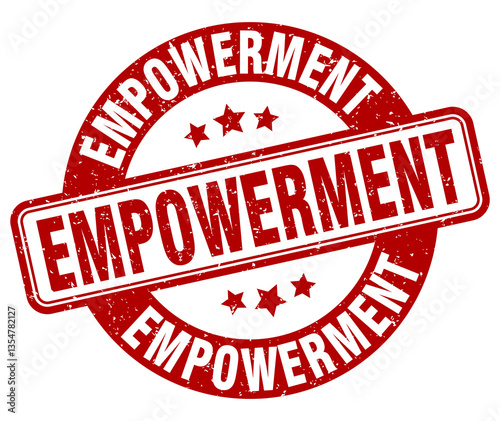 empowerment, stamp, red, label, round, rubber stamp, signs, badge, circle, grimy, grunge, insignia, isolated, scratched, seal, sticker, tags, template, texture, textured, vector, vignette, vintage, white background