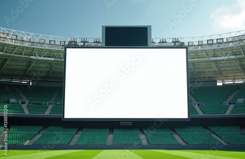 scoreboard, screen, stadium, advertisement, advertising, digital, signage, blank, white, empty, arena, venue, sport, sport, game, event, competition, championship, tournament, presentation, information, announcement, business, commercial, field, grass, seating, seat, banner, billboard, poster, display, led, display board, advertising space, marketing, promotion, branding, media, modern, technology, space, copy, template, background