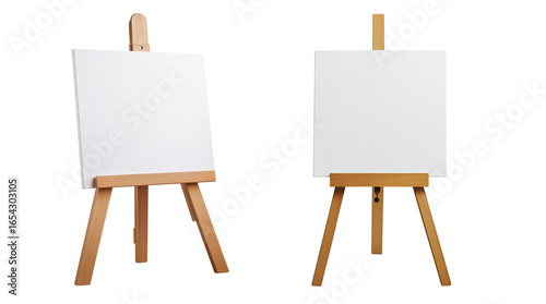 Empty Canvas on Wooden Easel Set Isolated on Transparent Background