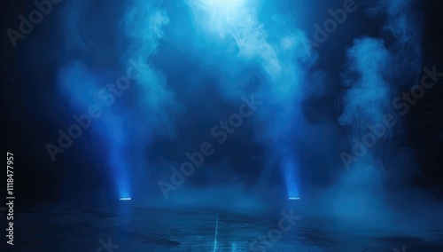 Empty Dark Stage with Orange Mist Fog Smoke - Platform Showcasing Artistic Work Product