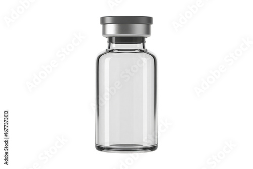 Empty Glass Pharmaceutical Vial with Silver Cap on Transparent Background