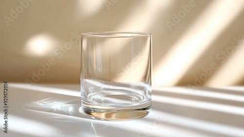 Empty Glass Tumbler on White Surface with Sunlight Streaks