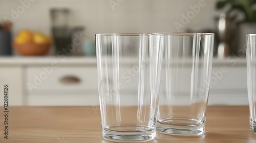 glasses, tumbler, empty, table, wooden, kitchen, background, clear, glassware, transparent, tabletop, surface, home, interior, modern, minimalist, design, simple, clean, bright, water, juice, drink, beverage, refreshment, still life, photo, food photography, composition, arrangement, dining, eatery, cafes, realistic