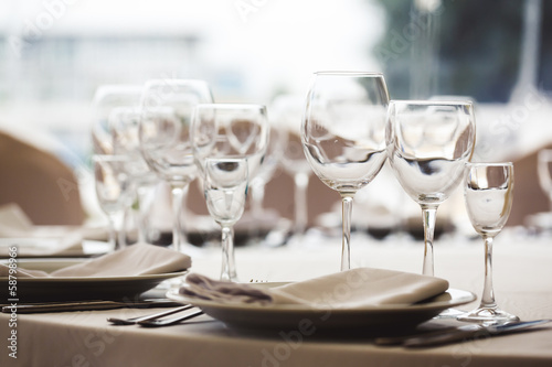 Empty glasses set in restaurant