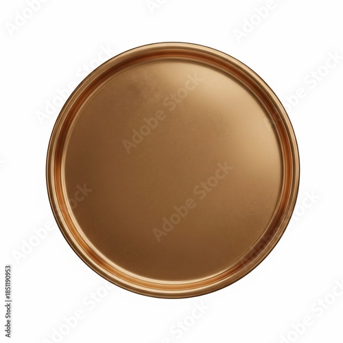 Empty Golden Metallic Round Tray Top View on White perfect for product mockups, web banners, social media, graphic design, food presentation, e-commerce,