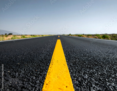 road, highway, yellow, black, asphalt, travel, journey, open, empty, perspective, long, distance, horizon, landscape, nature, daylight, direction, path, marking, line, disrobed, driving, automobile, summer, day, light, view, straight, scenic, route