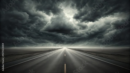 Empty Highway Under Dark and Cloudy Sky with Dramatic Clouds