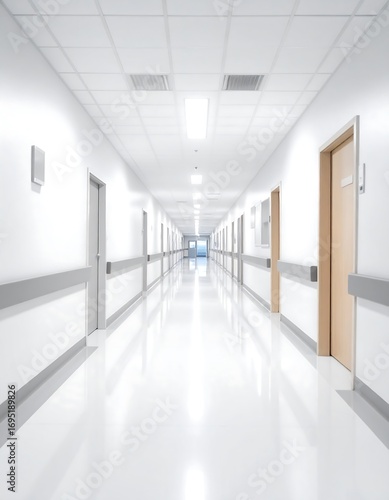 hallway, hospital, clean, bright, empty, sterile, white, modern, corridor, perspective, interior, architecture, design, medicals, empty space, smooth, reflective, long, straight, light, door, wall, ceiling, window, neutral, contemporary, future, cleanliness, hospitality