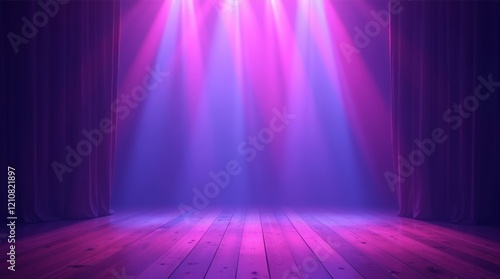 Empty illuminated stage with vibrant colorful lights. Scene background with dynamic pink and blue spotlights