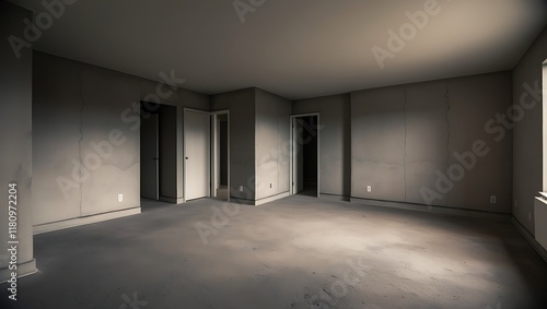 Empty interior of the apartment without decoration in gray colors. rough finish