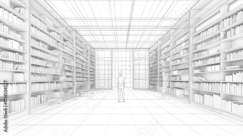 library, person, bookshelf, book, architecture, design, research, white, reading, cognition, study, learning, education, information, wisdom, bookshelf, interior, space, room, building, structure, glasses, ceiling, large, huge, open, modern, minimalist, clean, bright, calm, peaceful, serene, quiet, concept, idea, inspiration, future, progress, growth, success, development, innovation