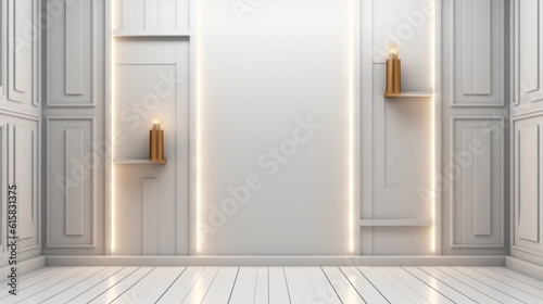 empty light abstract interior design background. White geometrical textured wall with beautiful lighting. AI generated.
