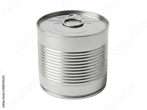 Empty metal tin can isolated on transparent background