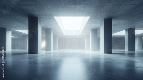 empty, modern, interior, space, concrete, floor, pillar, square, large, skylight, bright, light, minimalist, architecture, structure, room, roomy, calm, clean, grey, smooth, ceiling, geometric, symmetry, open, industrial, modern building, indoor, urban, minimal, bright light, construction, wall, daylight, empty space, modern architecture, contemporary, lighting, natural light, flooring, interior design