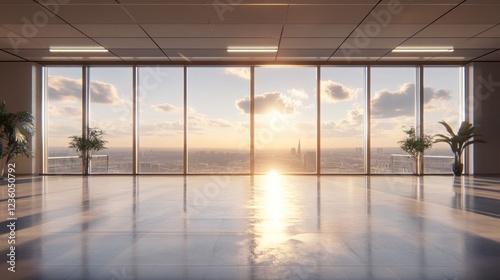 office, sunrise, city landscape, empty, modern, window, view, building, city, skyscraper, business, room, space, interior, design, architecture, panoramic, light, sun, corporate, real estate, commercial, floor, glasses, luxury, workspace, bright, clean, elegant, contemporary, professional, dawn, horizon, skyline, urban, development, property, meeting, work, office space, lease, rent