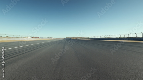 Empty motor sport asphalt race track, clear and awaiting action, with no cars in sight