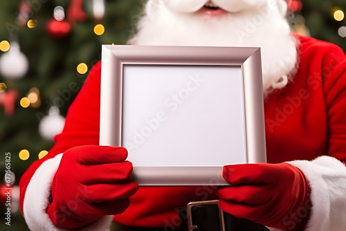 background, christmas, frame, santa, holiday, white, happy, christmas, claus, person, winter, celebration, red, gift, photo, hold, blank, isolated, design, hat, banner, holding, december, year, paper, hand, merry, season, present, concept