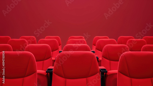 Empty red theater or cinema seats against a red background, ready for the next audience. Perfect for entertainment or event themes.
