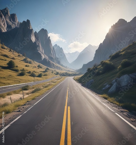 mountain road, endless, perspective, sunny, vanishing point, horizon, bright, summer, isolated, scenic view