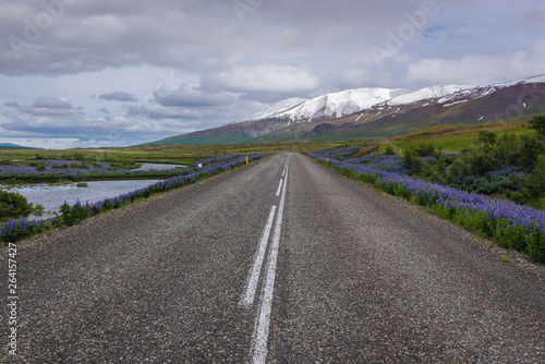 iceland, icelandic, island, isle, landscape, scenic, scenic, scenery, scene, nature, natural, flower, flower, plant, lupin, season, bloom, blooming, flowering, blossom, blossoming, road, snow, mount, mountain, mountain, asphalt, summer, east, eastern