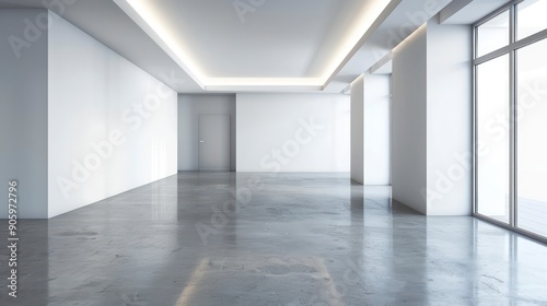 empty, wide, room, minimalist, interior, design, soft, muted, colours, nice, natural, light, architecture, modern, roomy, clean, concrete, floor, big, window, living room, office, house, business, building, space, construction, blank, wall, white