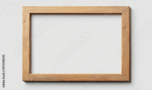 Empty rustic wooden rectangular frame with natural texture on white background casting a subtle shadow