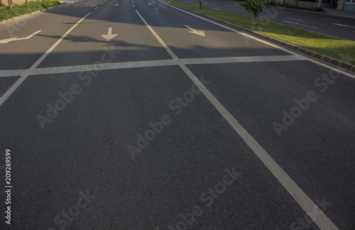 road, asphalt, street, line, parking, track, signs, white, lane, traffic, empty, city, marking, race, arrow, lot, urban, car, sport, line, way, tarmac, highway, number, direction, go, trip, transportation, concept, building, office, modern, business, background, landscape, nobody, architecture, exterior, sky, financial