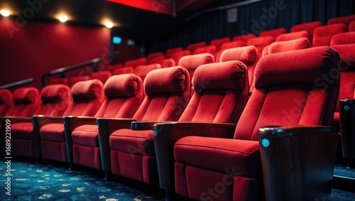 theatre, seating, chair, red, auditorium, performance, stage, backstage, dark, dim, ambience, empty, cinema, presentation, venue, comfortable, stylish, professional, functional, background, shadow, no people, furniture, modern, sleek