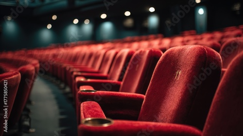 Empty Theater Seats: Rows of Red Velvet Seating in a Classic Auditorium for Performance Arts
