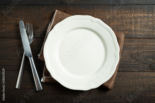 wood, up high, background, copy, nobody, blank, object, white, table, plate, meal, dinner, space, eatery, circle, utensil, cooking, kitchen, cookery, ceramic, single, shiny, wooden, breakfast, dish, food, round, clean, studio, lunch, crockery, cutlery, dining, overhead, tableware, porcelain, flatware, path, view, empty, simple, crockery, bright, top